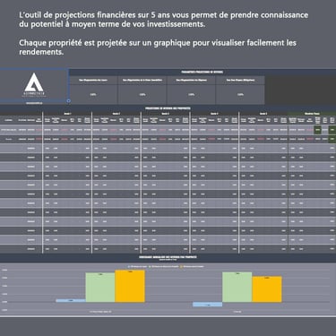 Le Google Sheet d' Analyse Immo Locatif te permet de faire des projections sur 5 ans en termes de revenus locatifs, de dépenses d'opérations, de cumul d’équité et de prise de valeur de la propriété.