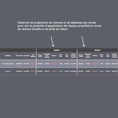 Grâce à ces projections, rien ne sera laissé au hasard. Tu sauras exactement quelles propriétés présentent le meilleur potentiel d'investissement.